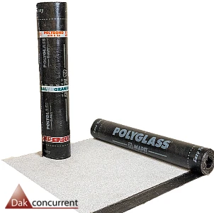 Polybond APP 470 K24 wit is een Komo gecertificeerde bitumineuze gemodificeerde dakbedekking. De firma Polyglass uit Italië is producent van deze dakrol. Polyglass heeft sinds begin 2023 de roldikte verhoogt naar 4.3 mm op de zelfkant. De bitumen brandrol heeft een gecombineerde 180 grams polyester/glasvlies inlage. De dakrol is leverbaar met rolafmeting 5 x 1 meter en 36 rollen op een pallet van 1 x 1,2 meter. Rolgewicht ca. 26 kg. Met Polybond APP heeft U een hoogwaardige bitumineuze dakbedekking voor een zeer scherpe prijs. De dakbedekking is aan de onderzijde voorzien van een wegbrandfolie en is aan de bovenzijde afgewerkt met witte leislag. Ook verkrijgbaar met zwarte leislag en bezande bovenzijde. Deze bitumen brandrol wordt toegepast als toplaag in meerlaags mechanisch bevestigde dakopbouwen. Voor gecertificeerde systemen kunt U de onderlaag Polybase 460 P60 gebruiken. Heeft U vragen over de Polybond APP 470 K24 wit of de toepassing, bel ons of neem contact op via het contactformulier.