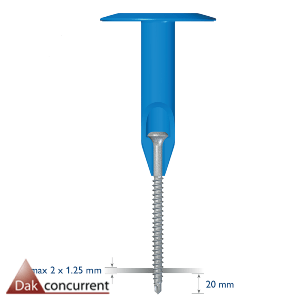 – Staalschroef BS 4.8 met kunststof tule R 75: voor het bevestigen van bitumineuze onderlagen en isolatie. Rekenwaarde 450/750 N